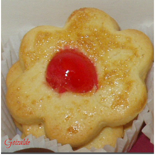- Con guinda: pintar las pastas con la clara de huevo con ayuda de un pincel o similar y colocar la guinda (yo le pongo media guinda). Con la clara conseguimos ese color dorado tan bonito. Hornear
