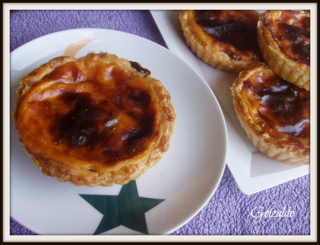 Cuando tengamos la crema templada-fría, rellenar las tartaletas de hojaldre y hornear unos 15 min a 180ºC o hasta que se dore la superficie de la crema